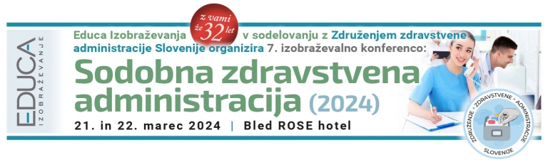 Pripravljamo že 7. konferenco SODOBNA ZDRAVSTVENA ADMINISTRACIJA; kajpak v tesnem sodelovanju z Združenjem zdravstvene administracije Slovenije. Konferenco bomo izvedli od 21. do 22. marca 2024 v konferenčnem hotelu ROSE na Bledu.